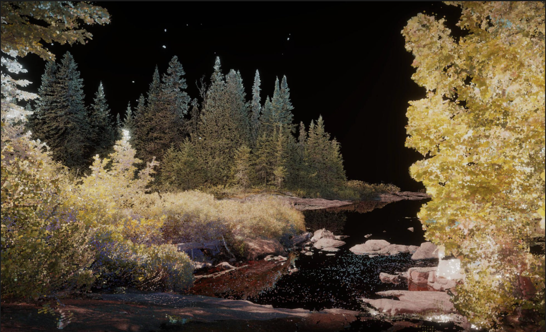 Nelly-Eve Rajotte, Les arbres communiquent entre eux à 220 hertz, 2024. Video installation: 3-channel 4K video, colour, generative sound, 25 min; modular synthesizer, electrodes, and tree. VFX artist and software developer: Codrin-Mihail Tablan Negrei. Courtesy of the artist.